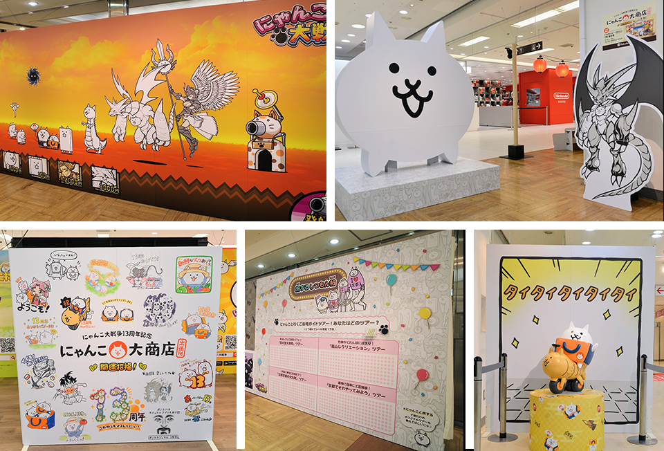 催事エリアにあわせたフォトスポットや、にゃんこ大戦争の13周年を記念した弊社のデザイナーの寄せ書き展示、各種造形物など、にゃんこ大戦争の魅力を詰め込んだコンテンツを、多数ご用意しています。