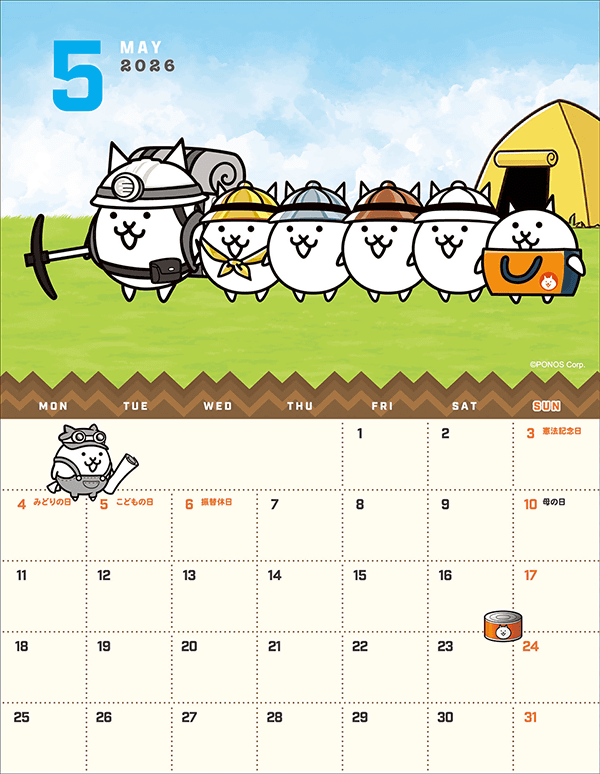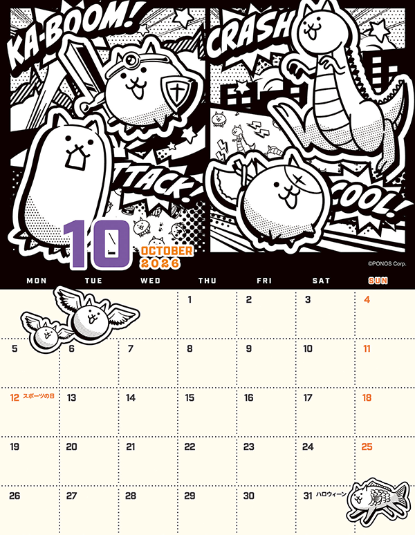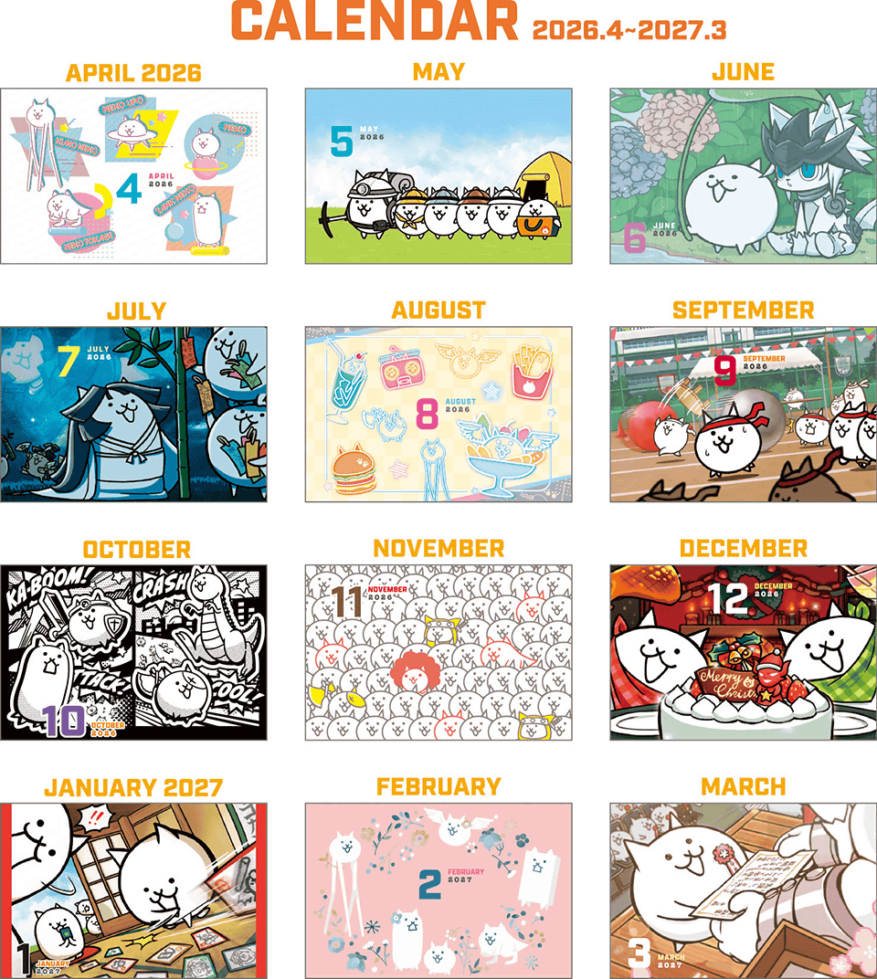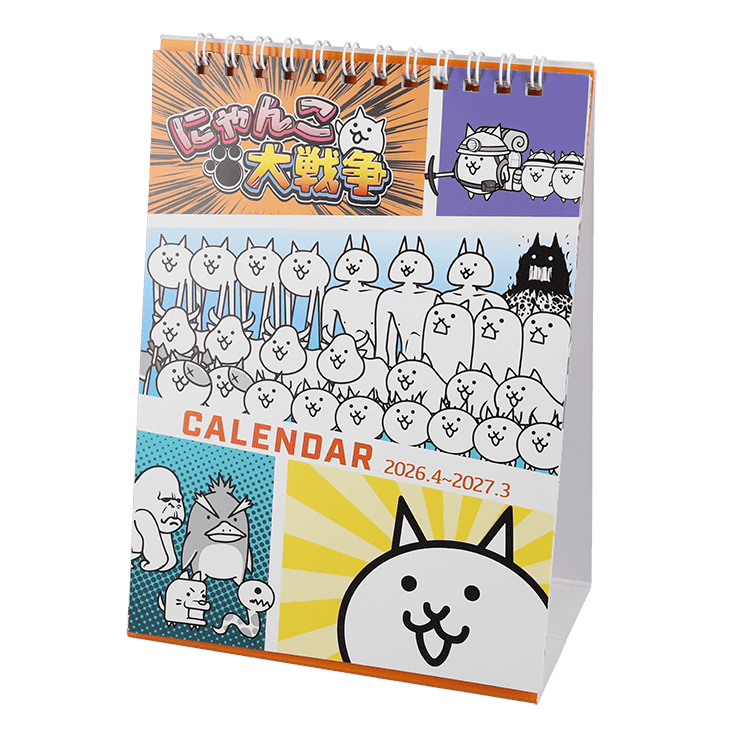 2026年4月から2027年3月までのにゃんこ大戦争の卓上カレンダーが登場。