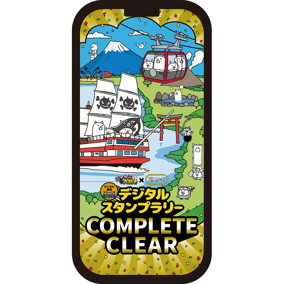 本企画は、「にゃんこ、箱根を満喫中!」をコンセプトに、『にゃんこ大戦争』のキャラクターたちが箱根の観光スポットに登場する体験型コラボレーション企画です。EMotを通じて、紙のスタンプ台紙を使わず、観光中の移動や立ち寄り体験を妨げない、シームレスなスタンプラリー体験を提供します。