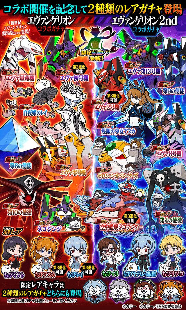 コラボ限定キャラクターが出現する『エヴァンゲリオン』ガチャを2種開催いたします。