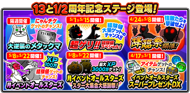 『にゃんこ大戦争』13と1/2周年記念イベント第1弾開催のお知らせ