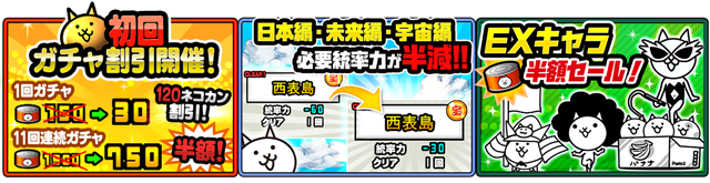 また、イベント期間中「EX」キャラの購入に必要なネコカンの数が半額に!